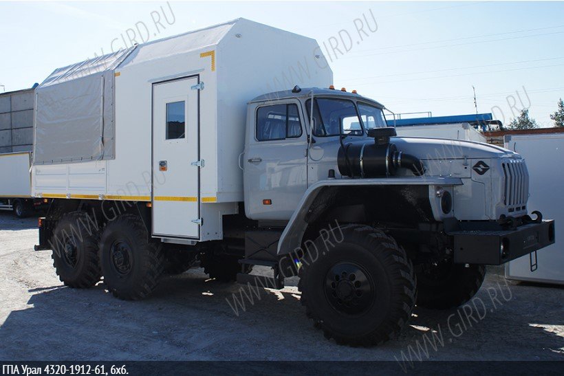 Назначение:Автомобиль грузопассажирский предназначен для одновременной перевозки ремонтной бригады и груза. Кузов ГПА Урал состоит из грузовой площадки с откидными бортами.