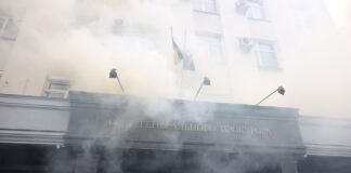 Протесты в Киеве: здание Офиса генпрокурора забросали файерами