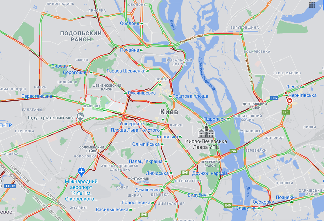 Фото: пробки в Киеве (скриншот карты Google Maps)