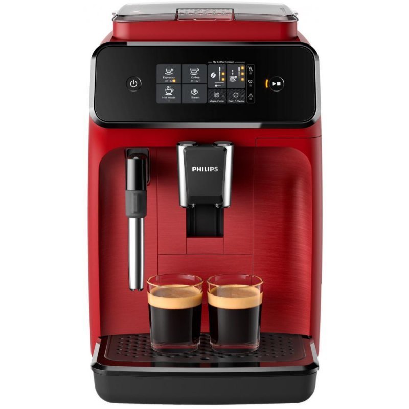 Кофемашина автоматическая Philips Series 1200 EP1222/00 Кофемашина автоматическая Philips Series 1200 EP1222/00 выпускается в современном дизайне в броских красно-чёрных цветах. Она разработана для настольного применения и может использовать кофе в зёрнах и молотый. Встроенная мельница оборудована керамическими жерновами и регулируется 12 степенями помола. Система Aroma Extract поддерживает температуру воды в пределах от 90С до 98С, при которой максимально извлекается аромат. Прибор оборудован вспенивателем молока, чтобы получать качественную нежную пену для ручного приготовления капучино. Управление автоматической кофемашиной Philips Series 1200 EP1222/00 выполняется интуитивно понятным сенсорным дисплеем. Пользователь может задавать объём и крепость напитка, а также готовить две порции одновременно. Модель оснащена системой самоочистки, а её съёмные части очищаются под струёй воды, при этом некоторые из них можно мыть в посудомоечной машине.