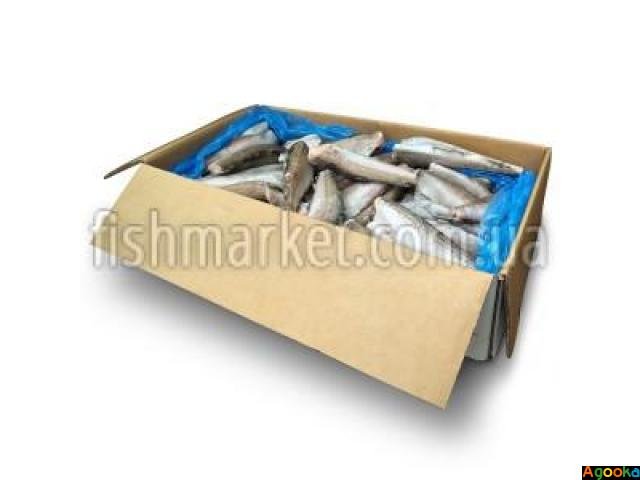 Дикий минтай без головы и хвоста. Свежемороженый. Вес тушки 300-500 грамм. Выловлен у берегов Аляски, США.Минтай (Theragra chalcogramma) обитает в Тихом океане. Холодноводная рыба семейства тресковых. Питается планктоном.