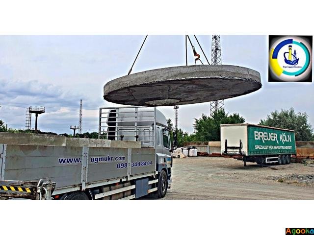 Также предоставляем услуги по доставке колец краном-манипулятором машины 5т, 10т, 15 т. по городу и региону.