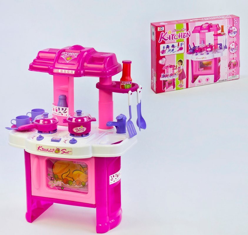 Детская кухня 008-26 подсветка, звук, на батарейке Игровой набор 008-26 подарит Вашей дочери незабываемый жизненный опыт хозяюшки на своей детской кухне.Кухонная стойка оборудована всем необходимым для полного погружения в кулинарные сюжеты.- 2 конфорки;- духовка;- вытяжка;- мойка с краном;- небольшой столик.Световые и звуковые эффекты:- конфорка при включении подсвечивается красным светом и издает звуки готовки;- духовка подсвечивается мигающим светом изнутри и издает звуки таймераВ комплектацию набора входит:- инструкция;- наклейки;- стойка в разобранном виде;- 2 кастрюльки с крышками;- столовые приборы; - тарелки;- кухонная лопаточка и половник;- баночка для специй;- баночка для кетчупа;- стаканы. Размеры/габариты - длинна (см): 43 см - ширина (см): 30 см - высота(см): 60 см Размер упаковки: 60 см × 10 см × 43 см Упаковка: Коробка Возраст: от 3 лет