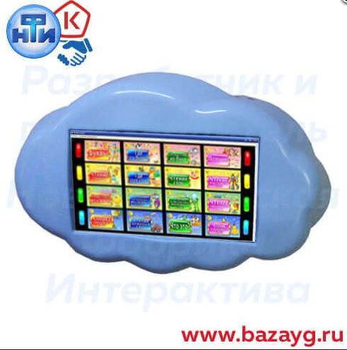 Интерактивная панель представляет собой настенный многофункциональный сенсорный комплекс, декоративный корпус которого выполнен в виде облака.