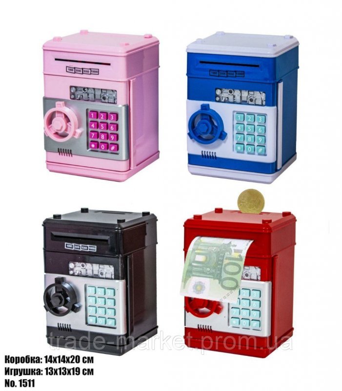 Деньги любят счет и тишину. А что лучше всего будет хранить тайну ваших сбережений? Конечно же сейф! Эта электронная копилка-сейф станет прекрасным подарком любому человеку, который хочет немного поднакопить и оставить это в секрете. Данная копилка-сейф оснащена специальным механизмом, который срабатывает при поднесении купюры к купюроприемнику и затягивает ее внутрь, помещая в основное отделение копилки. В верхней части есть прорезь для монет, которые собираются в специальный лоток и не смешиваются с купюрами. Как и положено настоящему сейфу, эта копилка имеет кодовый замок. Введите код, поверните ручку и она откроется. Если же вы вдруг забыли закрыть дверь, копилка напомнит звуковым оповещением, что дверца открыта.