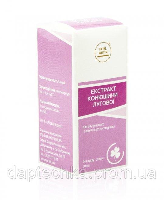 Состав: экстракт цветов и листьев клевера лугового жидкий. Показания: как противовоспалительное, витаминное, кровоостанавливающее, мочегонное, ранозаживляющее, противоопухолевое средство применяют при упадке сил, анемии, атеросклерозе, для улучшения работы эндокринной и костно-суставной систем. Экстракт используют при хроническом бронхите, бронхиальной астме, диатезе как противоаллергическое и отхаркивающее средство. При гастритах, колитах, холециститах как противовоспалительное и заживляющее средство. При нерегулярных и болезненных месячных, воспалении яичников, в климактерическом периоде для улучшения самочувствия, уменьшения чувства жара, потливости. При боли и отечности суставов, при рассеянном склерозе клевер принимают как средство, питающее соединительную ткань. Рекомендации по применению: по 5-7 капель 2-3 раза в день до еды на воде. Сроки и условия хранения: 24 месяца при температуре +5о+25оС Противопоказания: индивидуальная непереносимость.