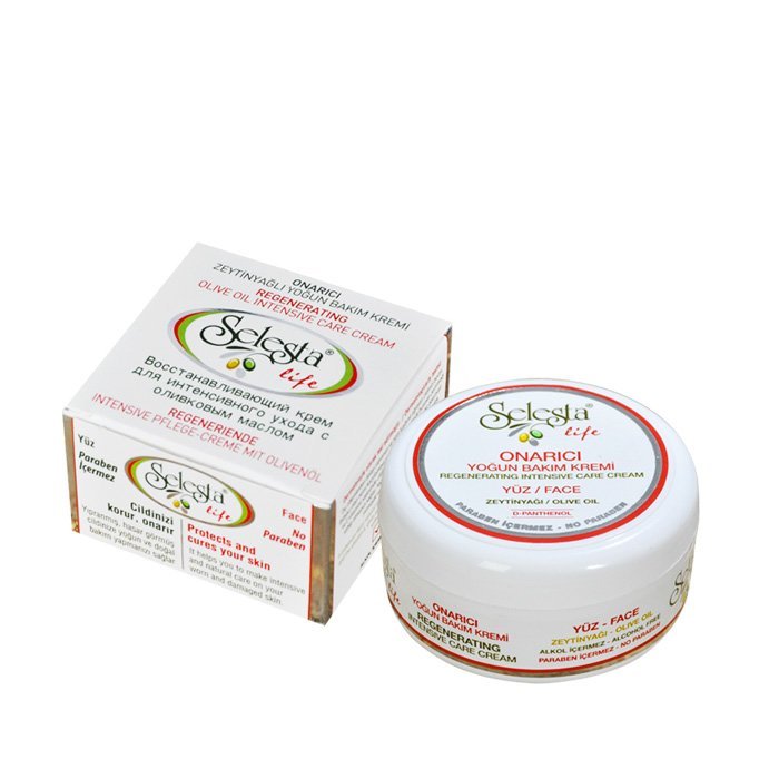 Восстанавливающий крем SELESTAlife для интенсивного ухода за лицом с оливковым маслом. 100 мл (2200003) Восстанавливающий крем для интенсивного ухода за лицом с оливковым маслом. Для всех типов кожи. Регенерирует и обновляет клетки поврежденной кожи с помощью д-пантенола. Регулирует уровень увлажненности. Крем белого цвета. Имеет легкую текстуру, приятный аромат и быстро впитывается. Не оставляй жирного блеска или ощущения липкости на коже. Изготовлен без парабенов и без животных жиров.