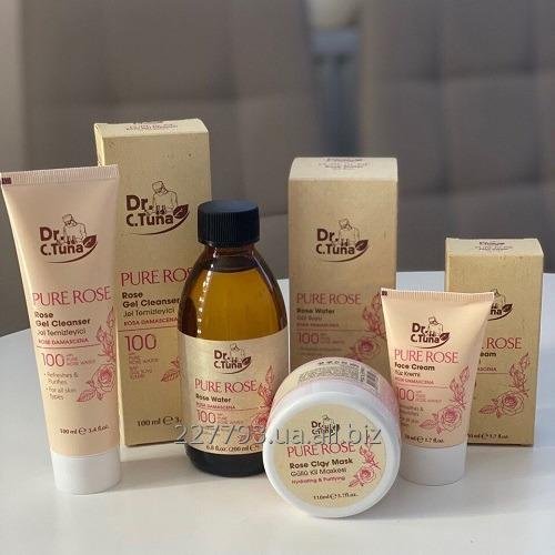 - гель для умывания, - глиняная маска, - крем для лица - розовая вода