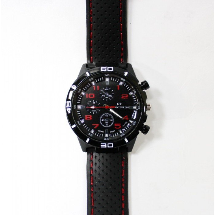 Часы мужские наручные Sanda GT - стильный аксессуар в спортивном стиле. Они сделаны как мужские, но прекрасно смотрятся и на женской руке. Корпус часов металлический, защищенный от царапин. Цифреблат с крупными арабскими цифрами, вокруг размещен дополнительный, с отметками секунд. Для дополнительных измерений на циферблате размещены 3 вспомогательных. Ремешок резиновый, с прошивкой красной нитью по краям и неполной перфорацией. Часы полностью герметичны, можно купаться, принимать душ и быть спокойным за сохранность аппарата. В часах применена кварцевая стабилизация механизма.