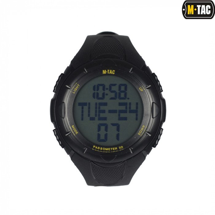 Часы тактические с шагомером M-Tac черные – по-настоящему незаменимый аксессуар для людей, ведущих активный образ жизни. Модель пользуется популярностью у страйкболистов, спортсменов, охотников и рыбаков.