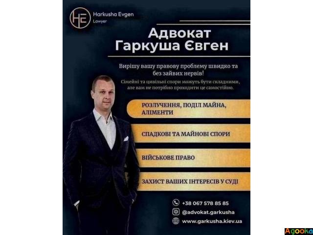 Адвокат спадкові справи Київ, адвокат цивільні справи Київ, юрист Київ консультація, адвокат військове право Київ, юридична допомога військовим, мобілізація юридична допомога Київ, звільнення з армії адвокат Київ, соціальні гарантії військових юрист,.адвокат з досвідом Київ, адвокат Київ, сімейний адвокат Київ, адвокат з розлучень Київ, адвокат аліменти Київ, поділ майна при розлученні Київ, адвокат опіка над дітьми Київ.Вітаю! Мене звати Євген Гаркуша, і я – адвокат із понад 15-річним досвідом у сфері сімейного, цивільного та військового права.