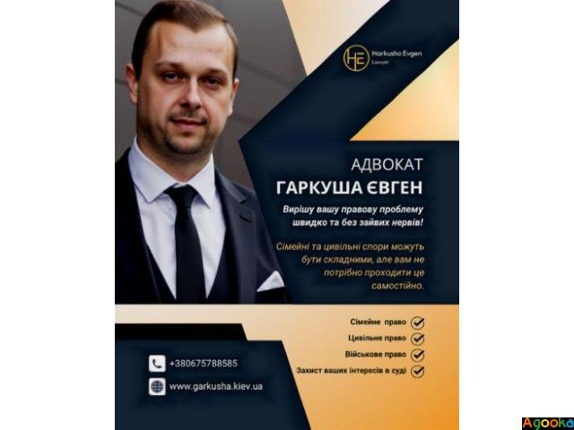 Допомога у списанні з армії Київ юрист, юридична допомога військовослужбовцям Київ, захист прав військових Київ адвокат, адвокат щодо звільнення з військової служби Київ, військовий адвокат консультація Київ, юрист з питань призову Київ, адвокат по ВЛК Київ допомога, оскарження рішення ВЛК Київ юрист.Мене звати Євген Гаркуша — я адвокат із понад 15-річним досвідом, який спеціалізується насамперед на справах у сфері сімейного права.