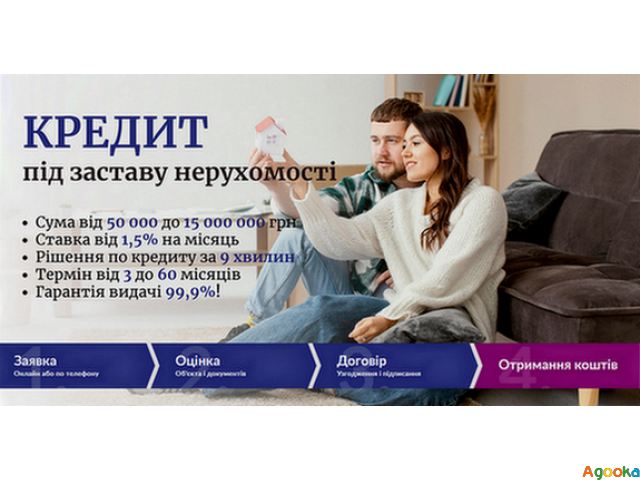 Кредит під заставу нерухомості в Києві. Кредит під заставу квартири з негативною кредитною історією. Кредит під заставу майна в Києві. Гроші у борг в Києві.Фінансова компанія "Банкнота" пропонує швидке фінансування під заставу квартири, будинку, комерційної нерухомості або земельної ділянки. Отримайте необхідні кошти на будь-які цілі без прихованих комісій та зайвих перевірок.