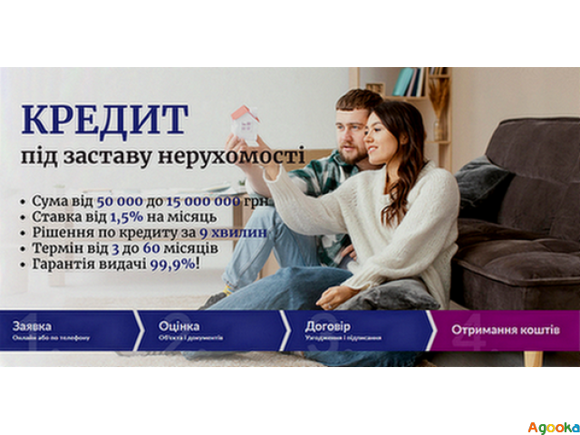 У нас прозорі та зрозумілі умови. Ви можете закласти квартиру, будинок, комерційне приміщення або земельну ділянку. Гроші надаються на будь-які потреби — бізнес, ремонт, лікування, виплату боргів або особисті витрати.
