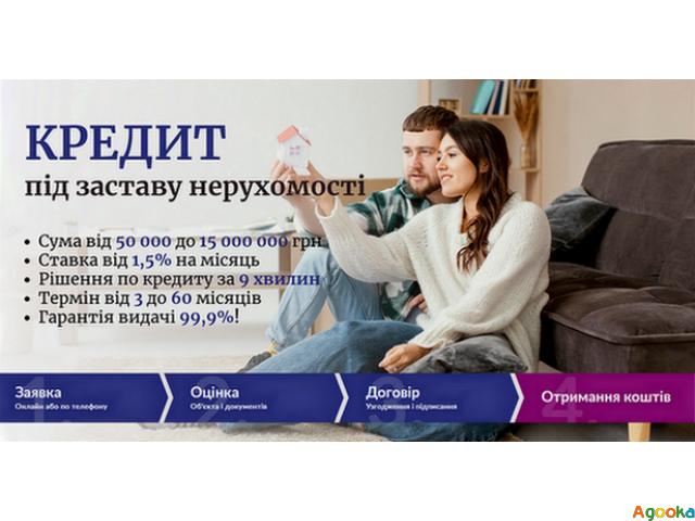 Ми надаємо фінансування під заставу квартири, будинку, комерційного приміщення або земельної ділянки. Працюємо швидко, офіційно, з прозорими умовами та без прихованих комісій.