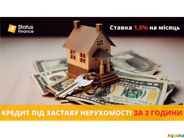 Іпотечний кредит під заставу квартири в Києві. Кредит без довідки про доходи у Києві під заставу нерухомості. Кредит готівкою під заставу квартири Київ. Кредит під 1,5% на місяць під заставу квартири у Києві. Взяти кредит під заставу квартири Київ.Фінансова компанія "Status Finance" надає кредити під заставу нерухомості за ставкою від 1,5% на місяць, строком до 84 місяців та сумою від 20 000 до 20 000 000 гривень. Рішення про ваш кредит приймемо протягом 7 хвилин. Ми готові надати до 80% від ринкової вартості вашої застави.