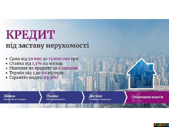 Оформити кредит під заставу нерухомості на найвигідніших умовах. Кредит під заставу будинку у Києві. Кредит під заставу нерухомості Київ. Кредит під заставу квартири у Києві. Кредит під заставу нерухомого майна Київ. Споживчі кредити для фізичних осіб під заставу нерухомості у Києві.Фінансова компанія "Банкнота" пропонує кредит на будь-яку мету від 50 тис. грн. до 15 млн. грн. під заставу квартири, будинку, нежитлового приміщення.