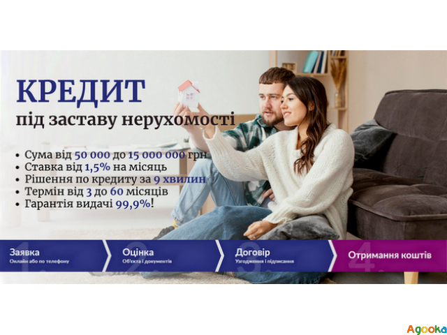 Оформлення кредиту у нас не вимагає перевірки кредитної історії чи наявності поручителів. Для оформлення вам потрібно буде надати лише паспорт, ідентифікаційний код і документи на заставне майно.