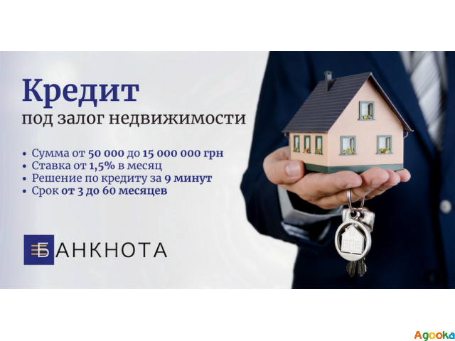 Кредит без отказа, срочный заем под недвижимость, кредит под залог дома, деньги под залог жилья Киев.Финансовая компания «Банкнота» предоставляет кредиты под залог недвижимости в Киеве, Киевской области, Львове, Черновцах, Ивано-Франковске, Тернополе, Ужгороде и многих других городах Украины. Вы можете получить заем под залог квартиры, дома или другого имущества с минимальной ставкой.