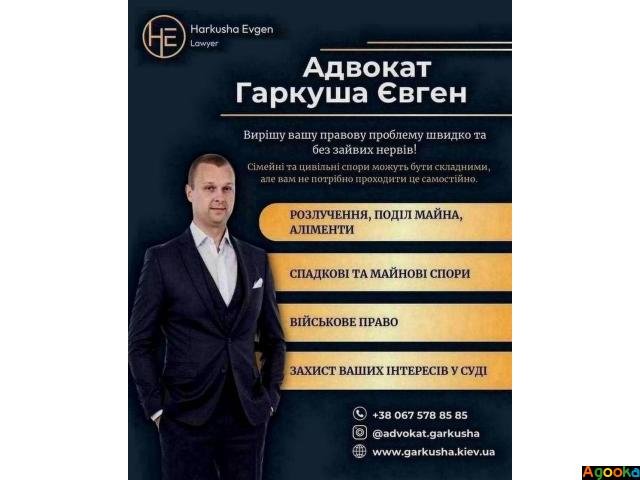 Юридичний захист у Києві. Адвокат у Києві. Послуги адвоката у Києві. Консультація юриста в Києві. Юридична консультація в Києві. Правова допомога у Києві. Адвокат для військовослужбовців. Юридична підтримка військовослужбовців. Консультація адвоката у Києві. Допомога адвоката при мобілізації.Вітаю! Мене звати Євген Гаркуша, і я – адвокат із понад 15-річним досвідом у сфері сімейного, цивільного та військового права.