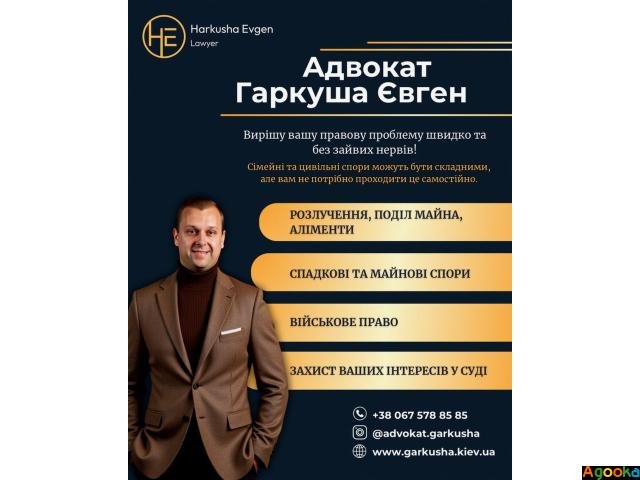 Допомога у справах мобілізації та звільнення зі служби. Юридичні рішення у сімейних і спадкових справах. Адвокат з сімейного та цивільного права.Мене звати Євген Гаркуша, я адвокат із понад 15-річним досвідом у галузі сімейного, цивільного та військового права.