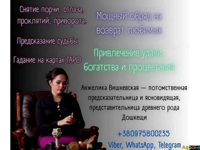 Анжелика Вишневская — одна из немногих, кто обладает настоящим магическим даром, передающимся по роду. Она не делает громких обещаний — она работает на результат, сохраняя безопасность, конфиденциальность и уважение к судьбе каждого человека.