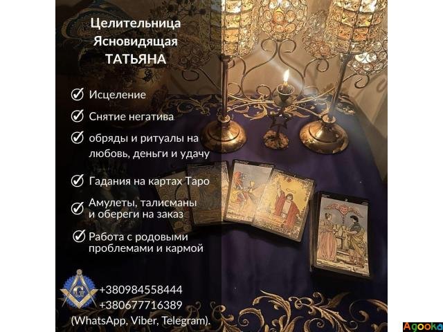 Магическая помощь Киев. Услуги мага Киев. Снятие порчи Киев. Снятие сглаза Киев. Сильный приворот Киев. Любовный приворот Киев. Вернуть любимого Киев. Гадание Киев. Таро гадание Киев. Таролог Киев. Гадание по фото Киев. Предсказание будущего Киев. Обряд на любовь Киев. Обряд на деньги Киев. Магия на успех Киев. Финансовая магия Киев. Лечение травами Киев. Целитель Киев. Травник Киев. Народная медицина Киев. Амулеты Киев. Талисманы Киев. Обереги Киев. Защита от негатива Киев. Снятие проклятия Киев. Чистка энергетики Киев.Ищете помощь в трудной ситуации? Хотите избавиться от проблем, защититься от зависти и негатива, наладить личную жизнь или привлечь удачу? Татьяна – опытный маг, таролог и целитель в Киеве. Многолетний опыт, древние знания и проверенные методы помогают людям решать сложные вопросы и находить гармонию.