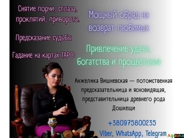 Гадалка в Киеве. Надежная гадалка в Киеве. Куда обратиться за помощью к гадалке в Киеве? Где найти проверенную гадалку в Киеве. Сильный приворот в Киеве. Приворот на любовь в Киеве, кто может помочь? Работает ли приворот в Киеве? Куда обратиться для приворота в Киеве. Приворот и возвращение любимого в Киеве.Анжелика Вишневская — потомственная предсказательница и ясновидящая, представительница древнего рода Дошкещи, обладающая знаниями, передаваемыми из поколения в поколение. С помощью своих уникальных способностей она помогает людям справляться с самыми сложными жизненными ситуациями, всегда доводя дело до положительного результата. Главный принцип работы Анжелики — это безопасность и эффективность. Она находит только проверенные и безопасные пути решения ваших проблем.