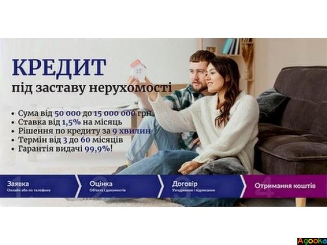 Ми надаємо кредити під заставу будь-якої нерухомості — квартири, приватного будинку, комерційного приміщення або землі. Отримані кошти можна використати на будь-які цілі: бізнес, навчання, лікування, ремонт чи фінансову стабільність.