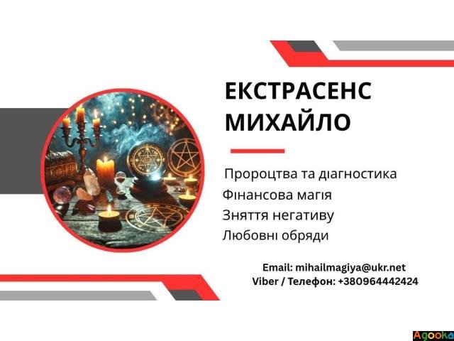 Михайло - досвідчений маг і екстрасенс, що володіє глибинним знанням езотерики, магії та енергетики людини. Його робота заснована на реальній практиці, сильних ритуалах і повазі до сили долі. Він не дає порожніх обіцянок, але береться за справу там, де дійсно може допомогти.