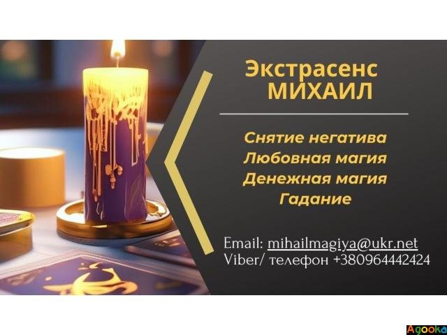 Михаил — профессиональный маг и экстрасенс, помогает людям восстановить душевное равновесие, вернуть любовь, наладить жизнь и избавиться от внешнего и внутреннего негатива. Работает как лично, так и дистанционно.