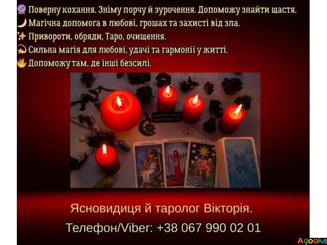 Мене звуть Вікторія. Я ясновидиця, екстрасенс, рунолог і таролог. Мій дар допомагає мені бачити те, що приховано від інших, відчувати енергетичні потоки і прибирати невидимі перешкоди, що заважають вашому щастю.