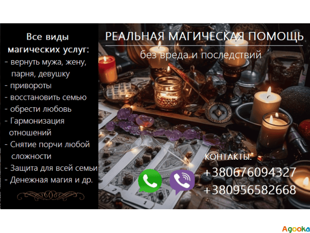 Помощь сильного Мага, решении многих жизненных проблем, без вреда. Возврат любимого человека, возвращение супругов в семью, сильные привороты, восстановить утраченные чувства, гармонизация отношений, обряды на замужество, прекратить скандалы, не допустить развода, встретить любовь, вызвать крепкую страсть, избавится от одиночества, ритуалы на подчинение, на постельные отношения, рабская петля, присуха, убрать с пути соперников, отворот, разлучить любовников, обряды на красоту и молодость. Снятие любого рода порчи, сглаза, венца безбрачия, родового проклятия, снятия приворота, установка защиты. Денежная магия, помощь в бизнесе, в карьере, продажах, финансах, приманить удачу, убрать черную полосу. Другое по запросу.За подробной информацией и консультацией, обращайтесь по указанным контактам. Огромный опыт. Помощь любой сложности.