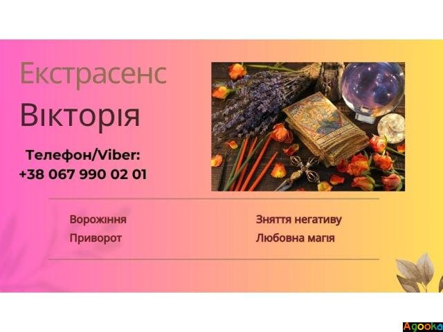 Я - Вікторія, екстрасенс, ясновидиця, таролог допомагаю людям відновити свою долю, прибрати негатив і повернути світло в життя.