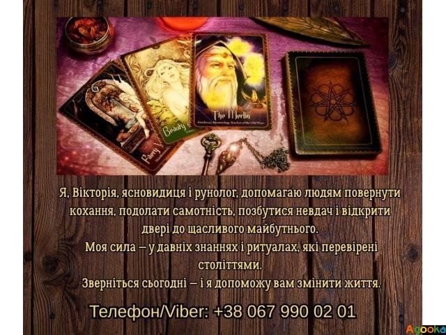 Потрібен екстрасенс у Тернополі або допомога таролога? Мене звати Вікторія, я ясновидиця, екстрасенс, рунолог і таролог, і я допомагаю людям змінювати своє життя, повертати гармонію і знаходити вихід навіть із найскладніших ситуацій.Я працюю з енергіями і використовую перевірені часом ритуали, щоб зняти негатив, відкрити нові шляхи і привернути у ваше життя любов, удачу і достаток.